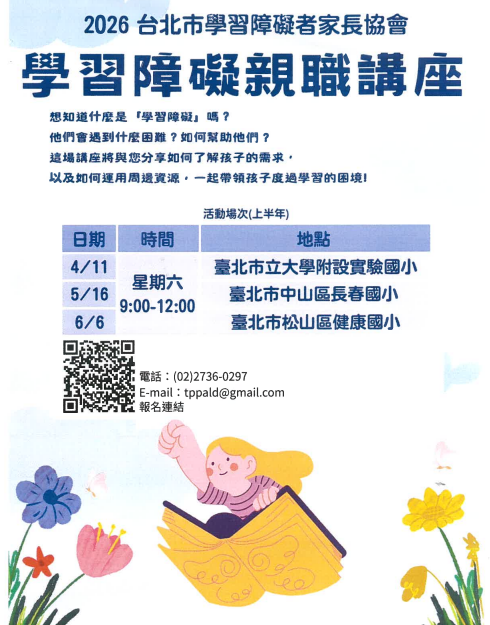 財團法人臺北市學習障礙者家長協會辦理「許孩子一個未來—認識學習障礙」親職教育講座,請貴校(園)轉知教保服務人員及家長知悉,並鼓勵家長踴躍報名,請查照。